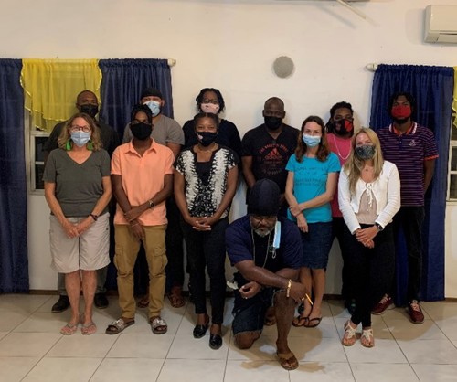 Photo: Montserrat workshop attendees from Government of Montserrat Ministry of Agriculture, Lands, Housing & Environment; Scuba Montserrat; Montserrat Port Authority; Montserrat marine police; UK Overseas Territories Conservation Forum (UKOTCF); JNCC; and Dr Greta Aeby.
