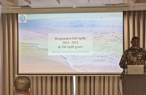 During the first day of the two-day workshop, the EPA gave a presentation on their role during a marine pollution incident. This was followed by a presentation from the coastguard covering the oil spills that have been responded to by the Maldives coastguard between 2021 and 2023. The rest of the day was led by the OCPP team, covering topics such as spill impact mitigation assessment, oil spill fingerprinting and post-spill monitoring.