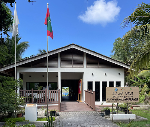 Images 8 and 9. The visit to Fuvahmulah island: headquarters of Fuvahmulah Nature Park; a group meeting to conduct a PAME assessment (photographs © OCPP).