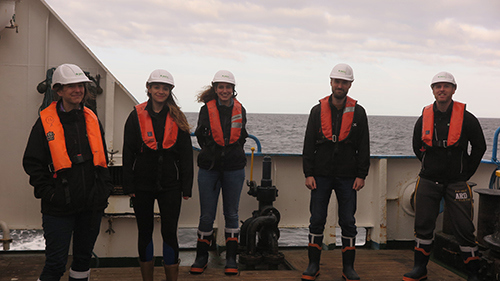 Photo: JNCC staff onboard the MRV Scotia, on the joint JNCC and MSS survey to Faroe-Shetland Sponge Belt (1121S) © JNCC/MSS 2021.