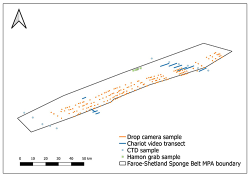 Figure: Map showing the locations of the samples collected at Faroe-Shetland Sponge Belt.