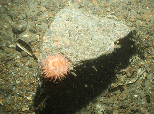 In areas of the site where the stable stony seabed is exposed, sessile epifauna can attach and grow. On these hard surfaces animals such as anemones, barnacles, and serpulid tube worms can be found (see Image 1). Amongst the muddy stones and gravel, large terebellid worms also make their homes and use “spaghetti” like tentacles to feed (Image 2).