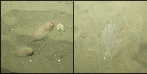 Sometimes their camouflage colours or inclination to bury themselves in the sand can make them difficult to spot in the seabed images, see how quickly you can spot each flatfish in the images below (Image 9).