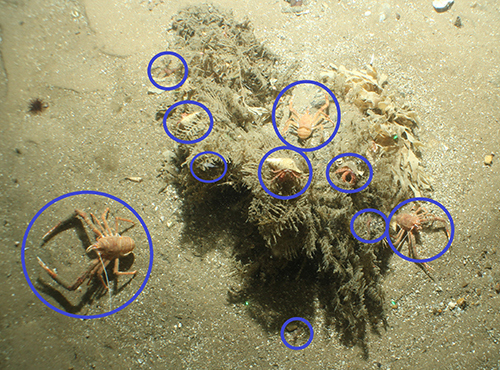 Locations of squat lobsters, hermit crabs, and shrimps (Image 4) (circled) (© JNCC).
