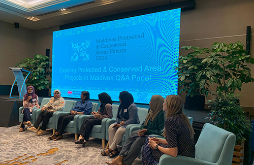 Images 1 and 2: The Protected and Conserved Areas Forum in Maldives: participants at the Forum; a question and answer panel event (photographs © OCPP).