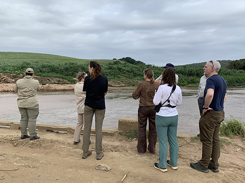 The visit to DUT was followed by a trip to the uMhlanga Estuary and oHlanga river system, an area that experienced a severe agrochemical spill three years ago. The site is one of the three estuaries of focus for a project which is assessing the utility of environmental monitoring for informing the recovery of habitats subject to extreme pollution events. Starting at the spill site, we travelled downstream to the estuary mouth, which helped us to understand the flow and impact of the agrochemicals through the diverse habitats and informal settlement affected by the spill.