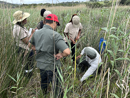 We also met with Dr Nick Rivers-Moore, another lead partner working on an overarching project to identify research gaps in how wastewater and solid waste is managed in South Africa. This includes a study which is using environmental DNA to assess biological community composition at various points upstream and downstream of wastewater treatment works with different levels of regulatory compliance. Another site visited was the Kluitjieskraal wetland near Cape Town, where research is assessing the impact of wastewater on wetland ecosystem services, helping to evaluate how wastewater treatment and management can be improved for ecological benefits.