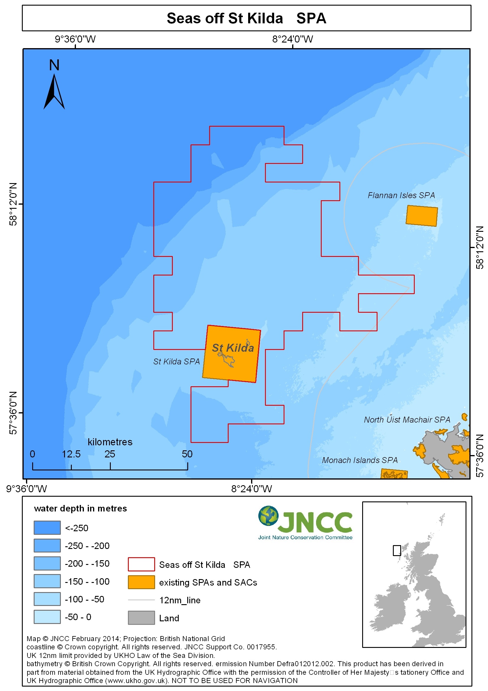 Site boundary description: The seaward boundary of the Seas off St Kilda SPA is based on the extent of the important aggregation of northern gannet. The landward boundary is adjacent to the existing St Kilda SPA. The SPA extends into offshore waters beyond 12 nautical miles; hence it is a site for which both NatureScot and JNCC have responsibility to provide statutory advice.